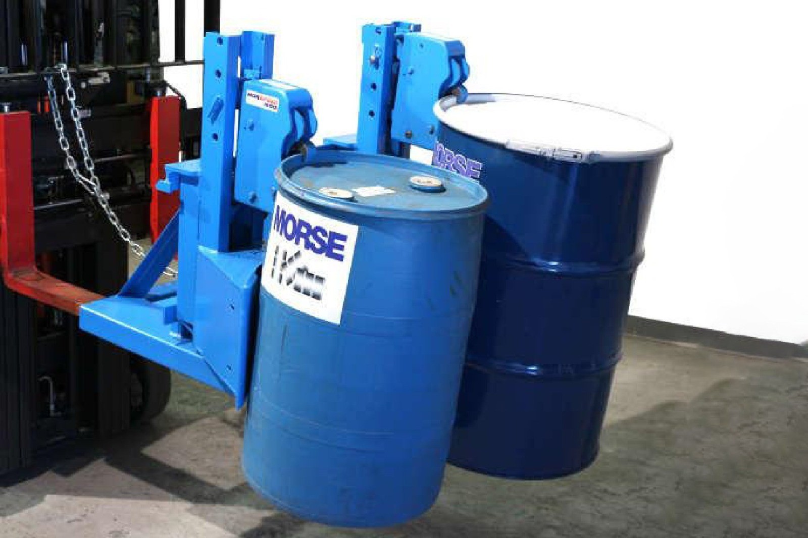 Morse Forklift Drum Handlers lift and move drums with your forklift. There are three different types of forklift attachments.