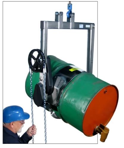 Tilting drum mixers allow easy floor-level drum loading. Other models require lifting a drum with your hoist or crane with a Morse drum lifter to load it onto the Drum Mixer.