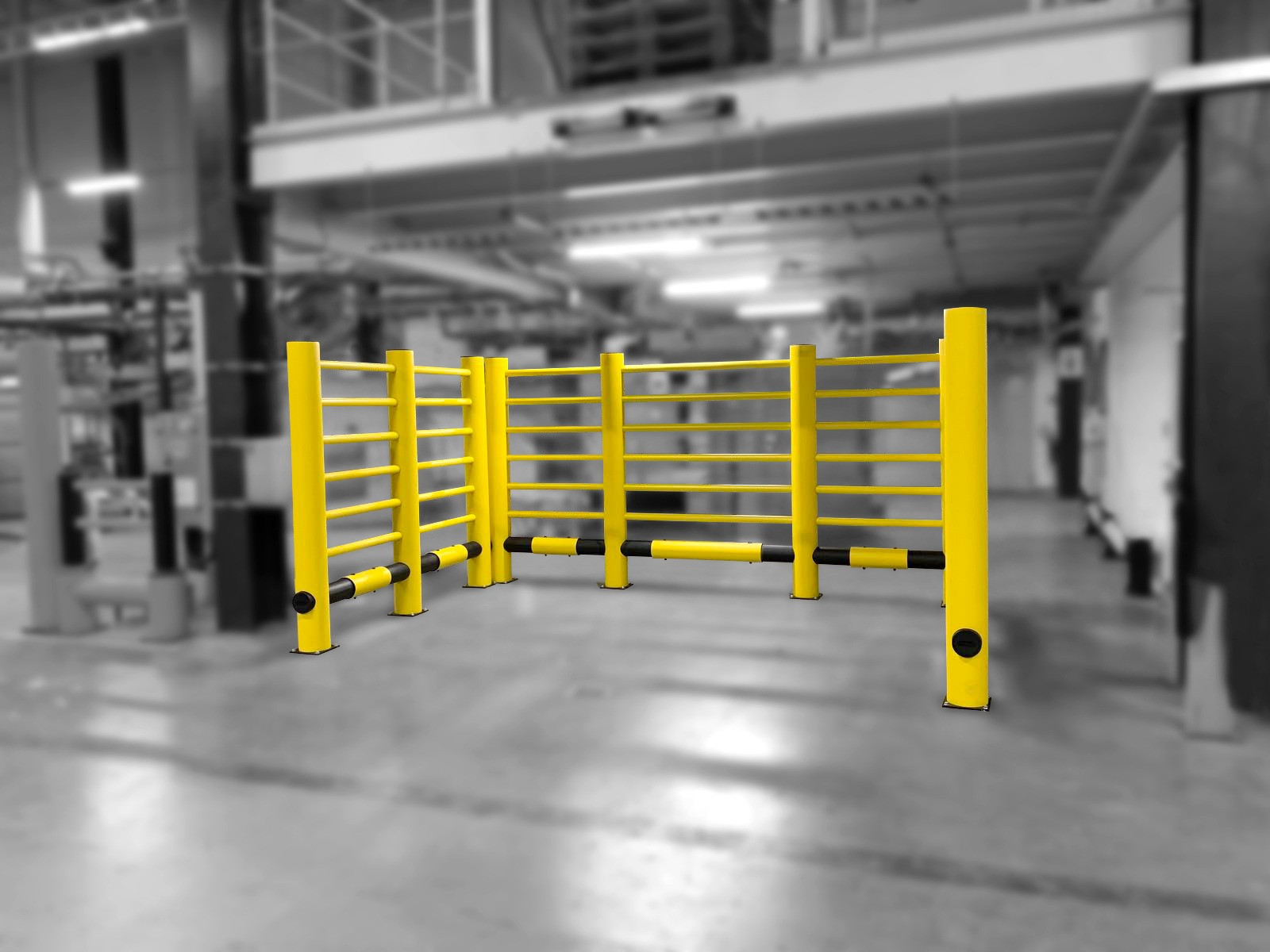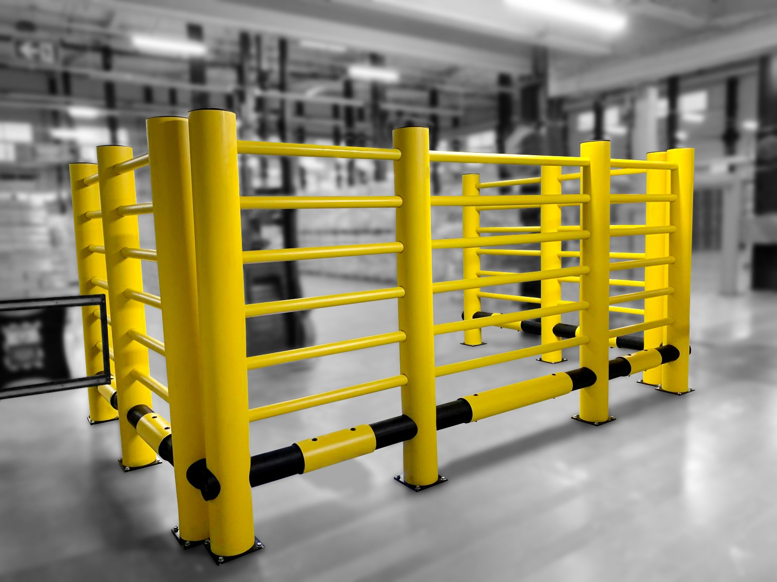 The safety barriers come with a modular configuration, which means that they can be assembled or re-assembled according to the layout of the industrial space.