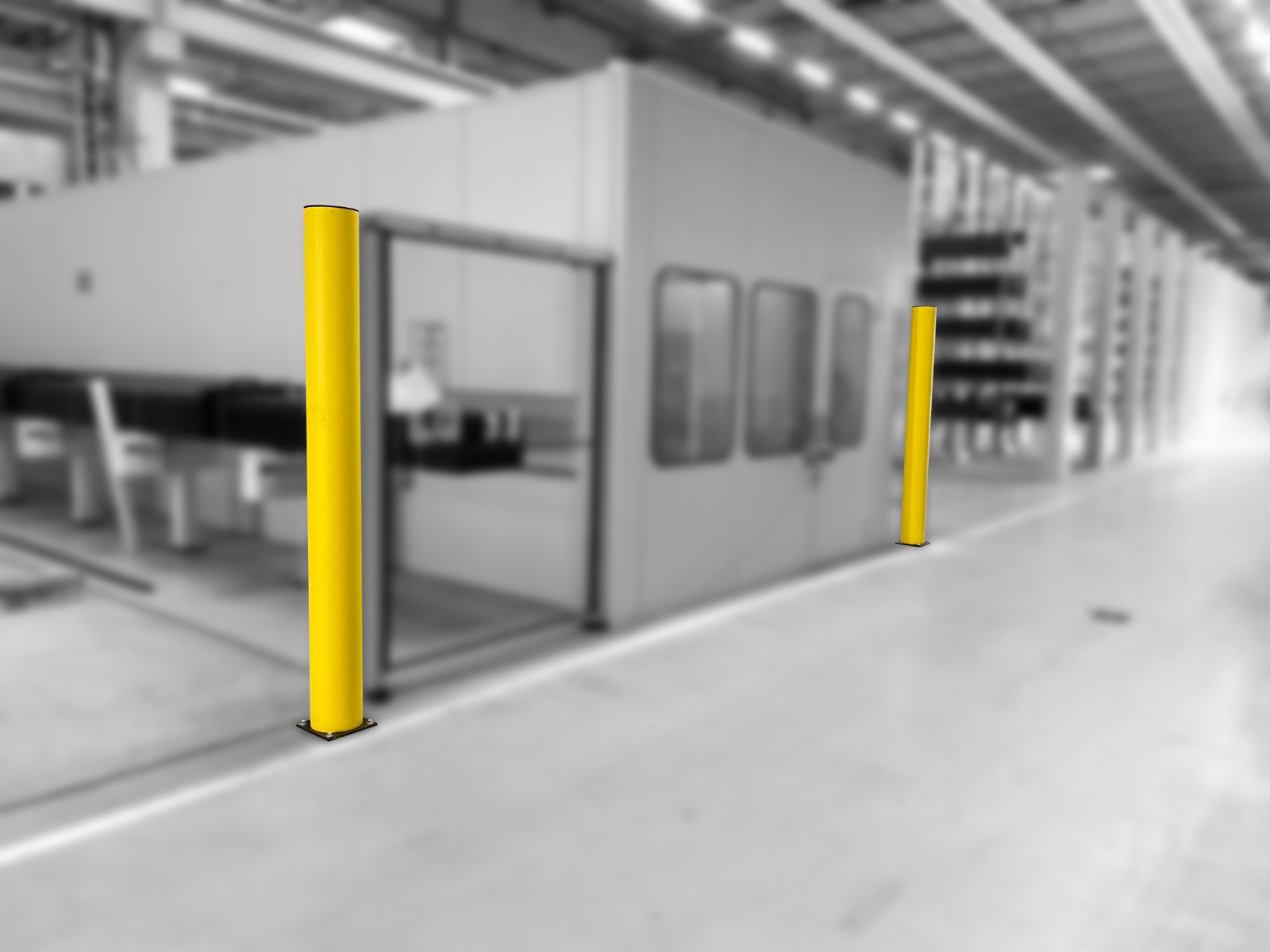 These industrial protection safety barriers are designed to withstand high-impact collisions, protecting both machinery and the floor from damage, thereby reducing the maintenance cost.