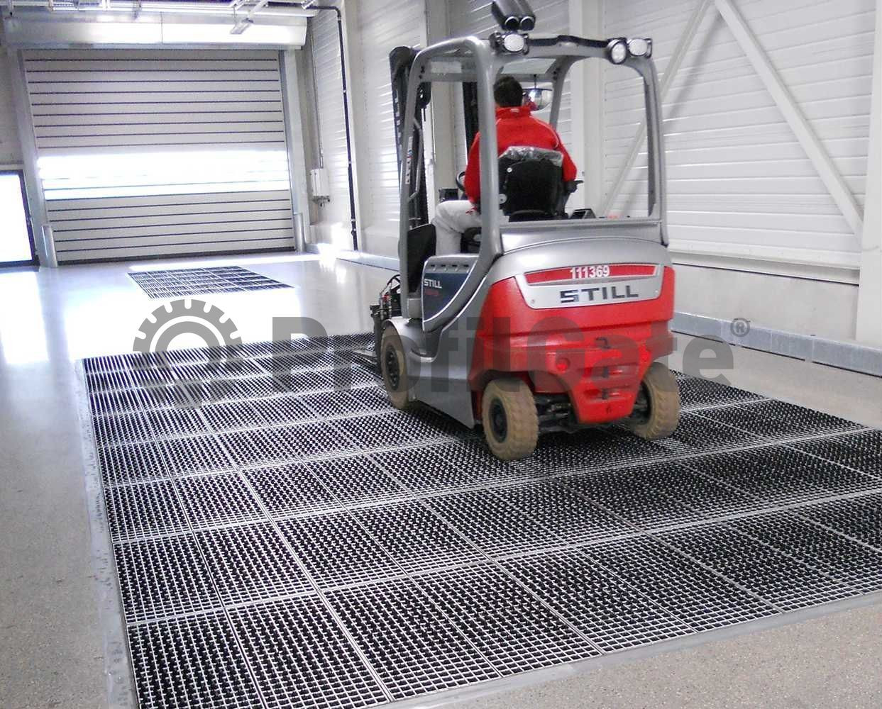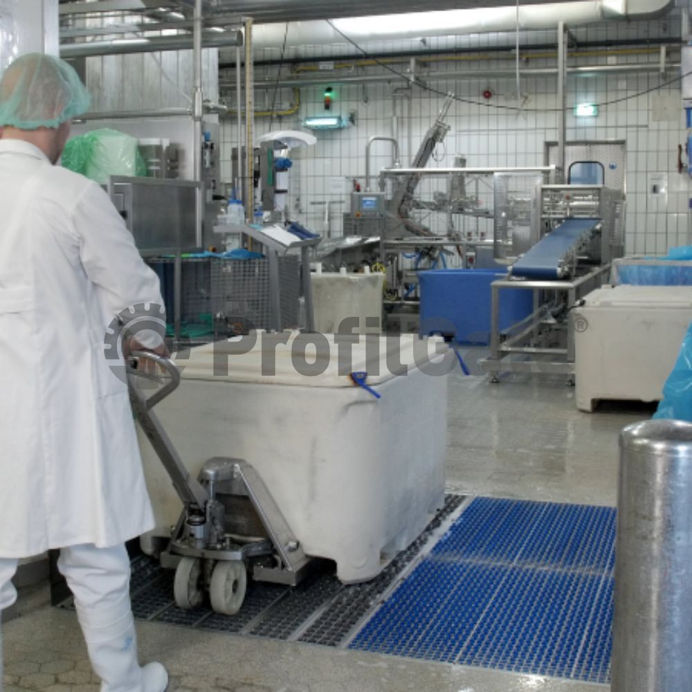 The strongest version of the cleaning mats have a high load with weight up to 40 tonnes. These products can be used for wet cleaning ,dry cleaning and disinfection of the undersides of transport boxes and pallets.