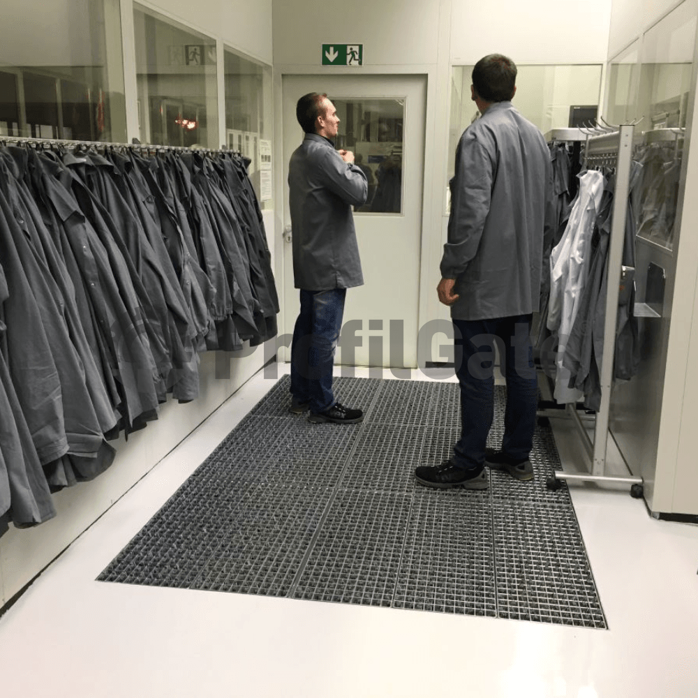 - ProfilGate® go: It is a power-free, automatic dry cleaning pad with angled bristles that clean soles as people walk over it.