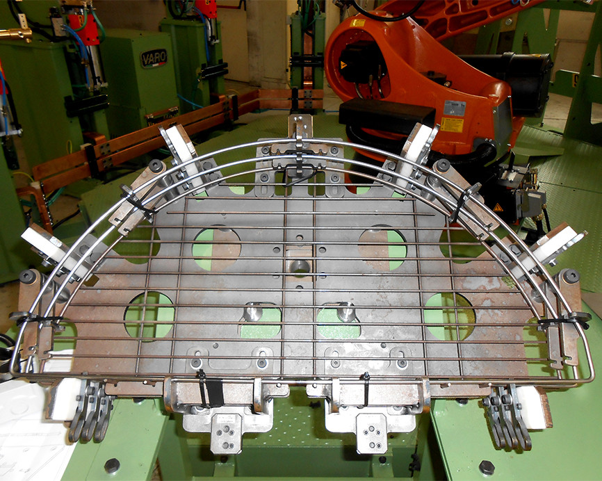 THE ROBOTIC WORKING ISLAND stands out for its wide range of applications and for its easy handling. The metal wire and / or sheet metal parts are loaded manually by the operator inside one of the two dedicated containment templates. Once the manual loading operation is finished, the operator will give consent to the manipulator for the execution of the automatic welding cycle, which will take place by means of Varo manufacturing column spot welders