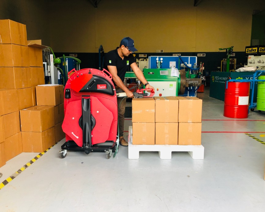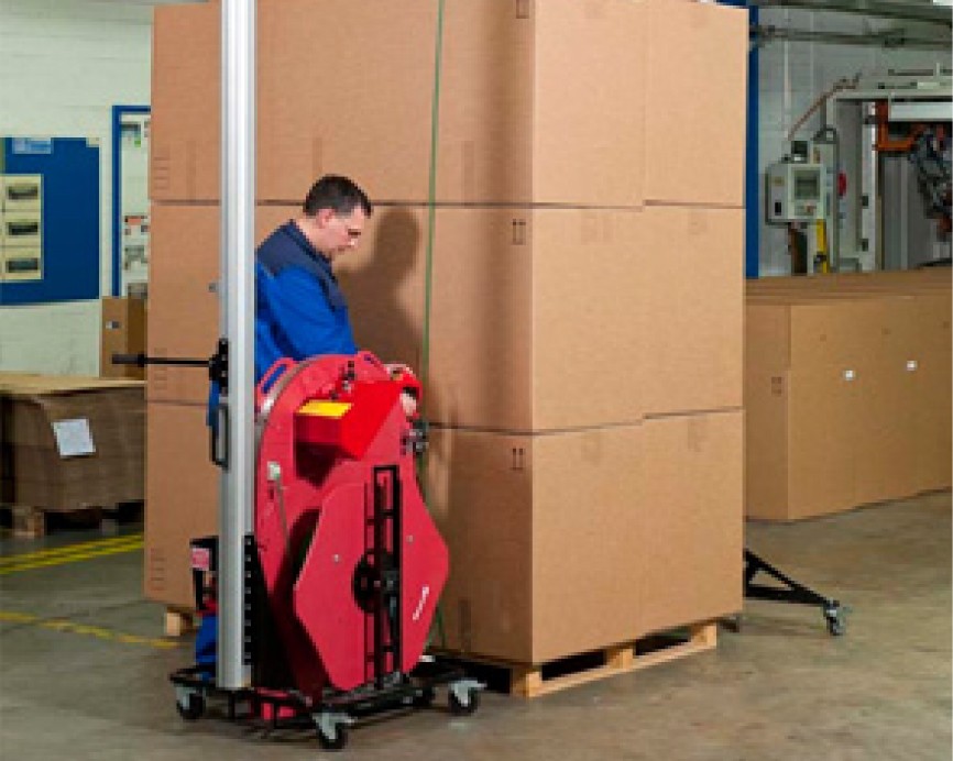 The mobile ergonomic pallet strapping machine avoid painful and harmful bend overs when strapping pallets and additionally save valuable time. The machine has line laser, triplex tool lift and strap brake relief to make the operator more comfortable during the operation. The battery-operated machine is easy to move around the factory premises, means there is no need of permanent designated location for strapping. The ergopack machine has different variants depends on the tension and strap sizes. The key features include easy operation, no bending, less time, battery powered and its mobile.