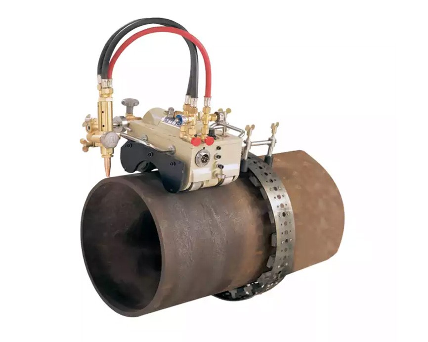 This machine is manually operated portable oxy fuel pipe cutting machine uses a chain and gear drive system. The drive chain is comprised of durable, interlocking links that can easily beaded or removed for quick change of pipe diameters. A graduated bevel collars ensures accurate bevel settings. The control valves for fuel, preheat oxygen and cutting oxygen are positioned away from heat yet conveniently for easy operate use.