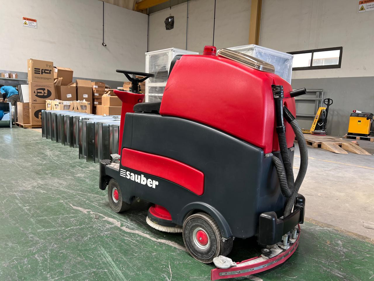 Operated by a seated user, the ride-on scrubber dryer features a broader scrubbing path and larger water tank compared to walk-behind machines, enabling it to cover more surface area quickly. The scrubbing system effectively cleans dirt, stains, and grime, while the integrated drying mechanism collects dirty water, leaving the floor dry and ready for use.